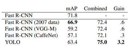 추가로 Fast R-CNN과 YOLO를 ensemble하게 되면 성능이 유의미하게 더 높아지는 것을 확인할 수 있다.