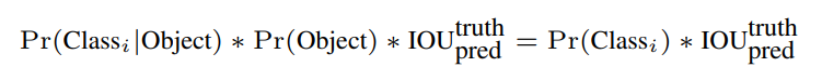 실제 object가 있는 box와 형성한 bounding box가 겹치는 정도를 표현하는 IOU(Intersection Over Union)를 사용하여 실제 object가 있을 확률을 계산할 수 있다.