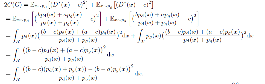 LSGAN의 loss function에 optimal한 Discriminator를 가정하여 식을 푸면 아래와 같이 된다.