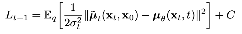 - L_t-1: q(x_t-1 | x_t, x_0) 과 p_theta(x_t-1 | x_t) 비교