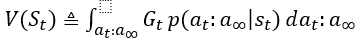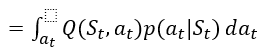 $V(S_t)$에서 $S_t$는 주어진 값이고, $a_t$는 환경에 따라 discrete할 수도, continuous한 값을 가질 수도 있다.(아래에선 continuous라고 가정)