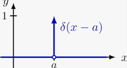 위와 같은 함수를 ${\delta}(x)$로 정의하며, 이 함수를 x축으로 a만큼 오른쪽으로 평행 이동하면 아래와 같이 된다.