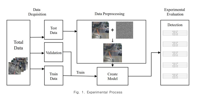 최근 비디오 및 이미지 왜곡에 따른 객체 탐지에 대한 연구가 꾸준히 진행되고 있다. 기존의 연구에서는 노이즈가 포함된 데이터를 학습 데이터 자체에 추가하거나 데이터에 발생한 노이즈를 제거했지만 본 연구는 데이터를 변형시키지 않은 original 데이터로 모델을 학습하고 test set에 노이즈를 비율별로 추가하여 detection을 진행한다는 차이가 있다.
