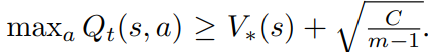 여기서 √(C/(m-1))은 양수의 값을 가지므로, 결국 error는 항상 양수보다 큰 값을 가지게 된다. 이에 본 논문에서는 Max Q optimal을 타겟으로 지정하게 되면 항상 √(C/(m-1)) 이상의 error가 발생하게 되니, Max Q optimal을 타겟으로 지정하는 것에 문제가 있다는 것을 밝힌다.