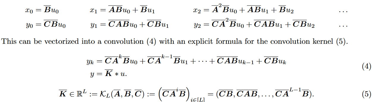 (2) HiPPO는 RNN에 부착된 operator로서 작동하기 때문에 병렬 연산이 작동하지 않고 vanishing gradient 문제가 발생하지만 LSSL에서는 하나의 layer로서 적용되고 비선형 함수가 Layer 내에 존재하지 않기 때문에 convolution처럼 병렬 연산을 진행할 수 있다.