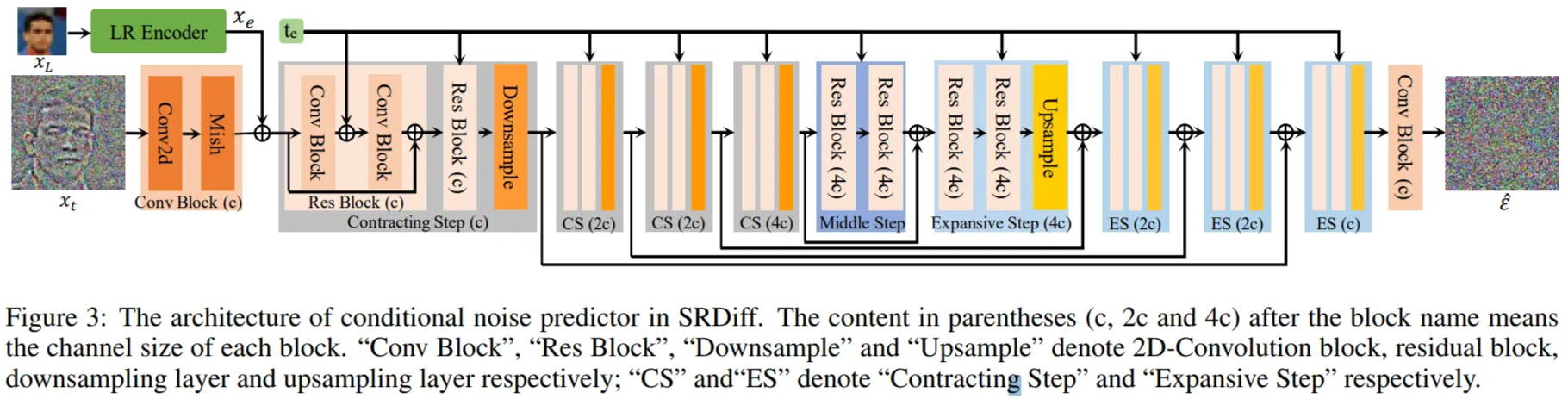 - Conditional Noise Predictor : 첫 번째 Contracting 단계의 채널 수 c=64