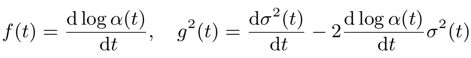 ($x_t$는 $t$번째 생성 이미지, $a(t)$와 $\sigma (t)$는 noise schedule을 나타내는 함수로, 각각 평균과 표준편차를 의미)