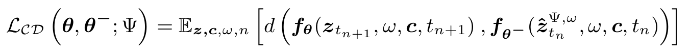DDIM과 같은 ODE solver $\Psi$를 이용할 경우 PF-ODE를 쉽게 풀 수 있다. 이를 이용해 구한 $\hat{z_{t_n}}^{\Psi}$의 값을 Consistenct distillation loss 식에 적용하고, 그 값을 최소화함으로써 $z_0$로 가는 경로를 구하도록 한다.