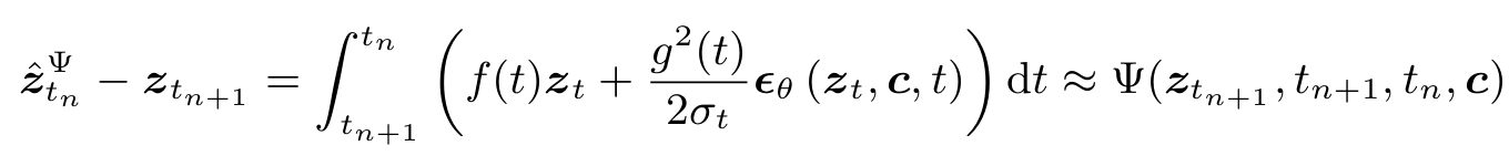 최종적으로, ODE solver로 사용할 수 있는 DDIM, DPM-solver, DPM-solver++를 ODE solver $\Psi$에 적용함으로써 모델이 완성된다. 예시로, DDIM은 아래 식을 적용하였다.