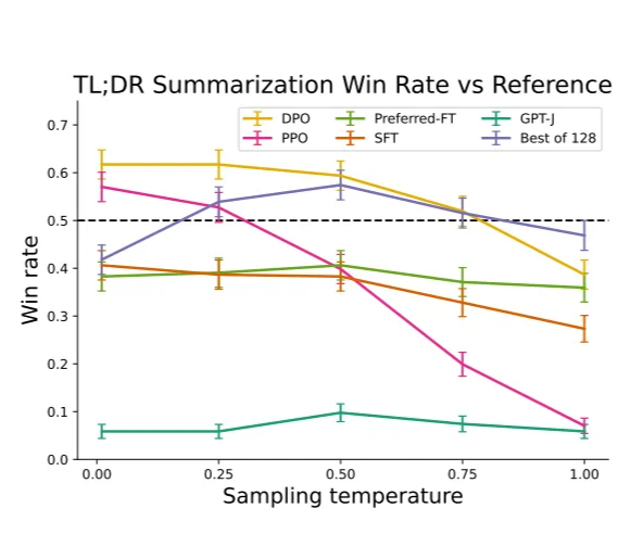 - 다양한 온도 sampling에서도 DPO가 안정적이다