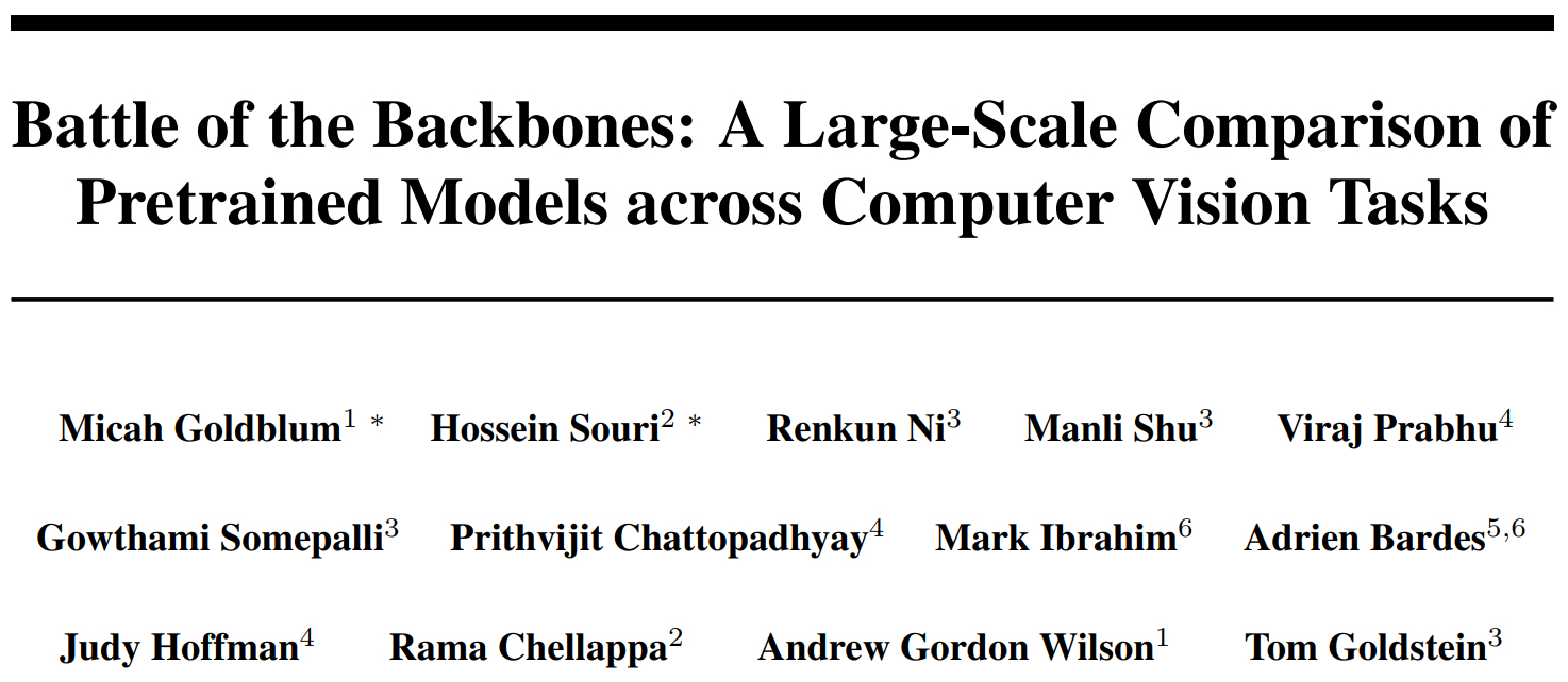 - 실무자가 어떤 backbone을 선택할지 도움을 주기 위해 해당 논문은 다양한 vison task(classification, object detection, Out-Of-Distribution generalization 등)에 적용되는 다양한 사전 훈련된 모델(vision-language 모델, self-supervised learning을 통해 훈련된 모델, Stable Diffusion backbone)을 벤치마킹하였음