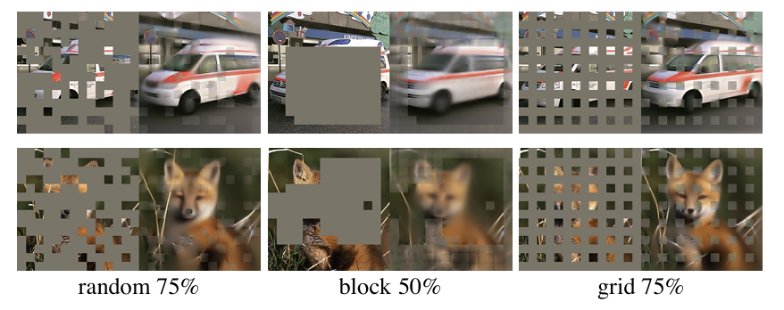 - 정보 밀도 차이: 언어는 정보 밀도가 높지만, 이미지는 공간적으로 중복된 정보가 많아 마스킹이 단순하면 학습이 어렵거나 쉬운 문제가 됨.