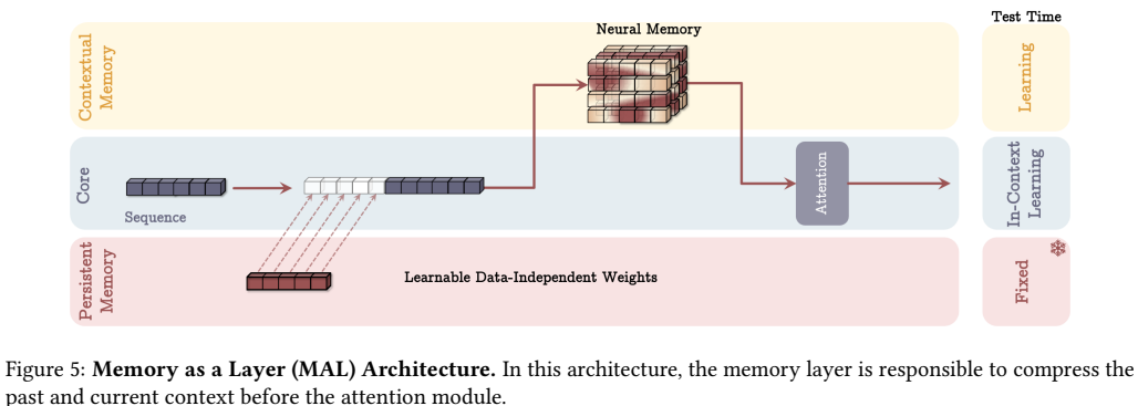 - Neural Memory는 Test-time Learning 가능, Persistent Memory는 변하지 않는다.