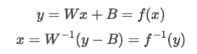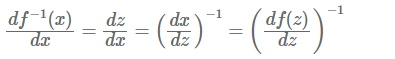 여기서 x=f(z)라고 하고 f가 invertible하면 다음을 만족한다 (Inverse function theorem). 변환의 자코비안과 역변환의 자코비안은 역행렬 관계를 가진다.