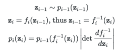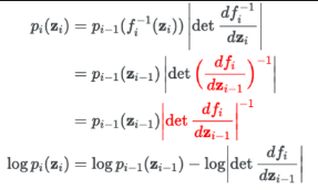 식의 determinant term은 변수 변환을 통해 invertible transformarion f-1을 적용한 후의 distribution π(z)를 normalize해주는 역할을 한다.