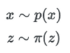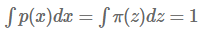 이때 확률 x의 확률 분포 p(x)와 z의 분포 π(z)는 다음을 만족한다.
