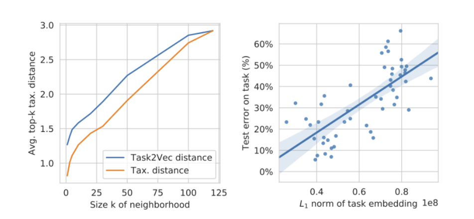 - Task2Vec에서 고안된 Task 간 거리 개념은 의미론적 거리에 대한 좋은 Measure로 확인됨