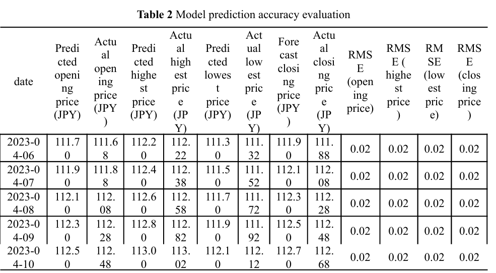 - 시가, 고가, 저가, 종가 모든 지점에서 RMSE가 0.02 JPY 수준으로 낮게 유지