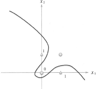 직선으로는 나눌 수 없지만, 곡선이라면 가능하다.