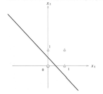 OR 게이트를 만들려면 0을 나타내는 원과 1을 나타내는 삼각형을 직선으로 나눠야 한다.