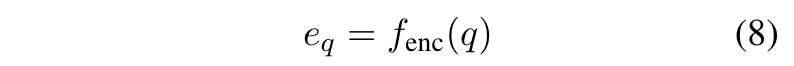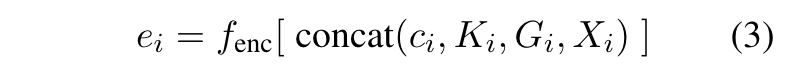 - $f_{enc}$: 텍스트 인코더 함수로, 입력된 텍스트(cᵢ, Kᵢ, Gᵢ, Xᵢ의 결합)를 받아서 밀집 벡터 eᵢ로 변환