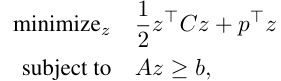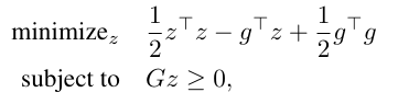 위와 같은 조건들을 만족하면서 현재 손실을 최소화하기 위해 Quadratic Programming (QP) 문제를 정의할 수 있다.