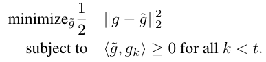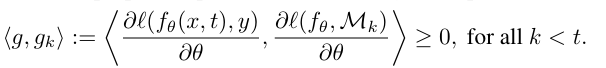 이때 이전 task의 loss들도 증가하지 않아야 하므로 다음을 만족해야 한다.