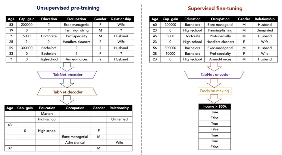 또한 TabNet은 자가지도학습 방식을 사용하 라벨이 없거나 부족한 상황에서도 학습을 수행할 수 있게 설계되었다.