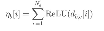 i단계에서의 가중치 중요도를 나타내는 수식이다. 여기서 ReLU를 적용해주는 이유는 중요하지 않은 특성에 대해서는 0을 부여하는 한편 음수값을 만들지 않도록 하기 위함이다.
