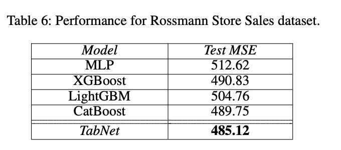 다른 데이터셋에 대해서 실험을 진행한 결과 역시 동일하게 TabNet이 가장 높은 성능을 보였다.