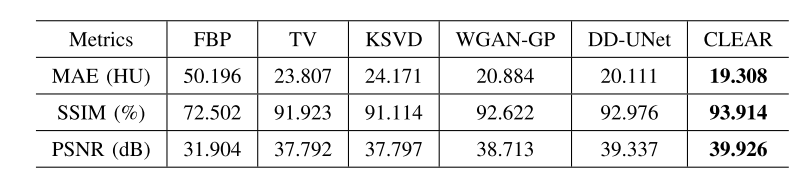 - CLEAR가 노이즈 억제, 미세한 구조 보존, 시각적 인식 향상 측면에서 유망한 성능을 보여줌