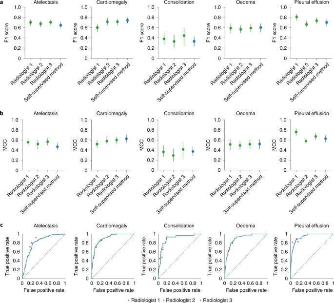 - 본 논문은 명시적인 주석이 없는 흉부 엑스레이 이미지로 훈련된 자기 지도 학습 모델이 방사선 전문의와 비슷한 정확도로 병리 분류 작업을 수행하였음