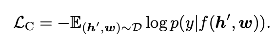 - 인코더 출력의 특별 토큰 [CLS] ( (h', w)의 융합된 비전-언어 표현) -> 완전 연결층(FC)을 이용한 이진 분류기 f를 적용하여 원본 이미지 표현(y=1)인지 오염된 것(y=0)인지 예측