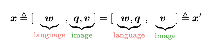 h' = [q, v]: 이미지 모달리티, w:언어 모달리티