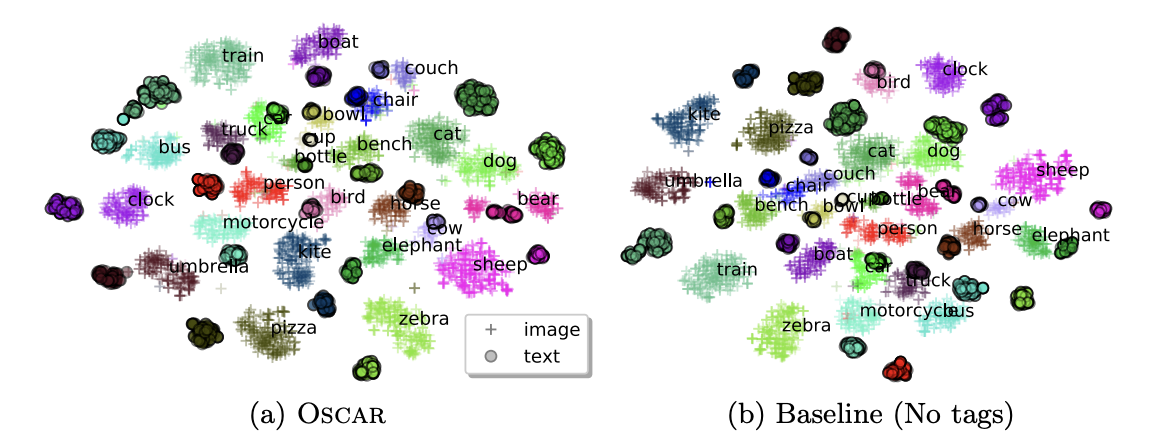 - intra class: 객체 태그의 도움으로 두 모달리티(이미지와 텍스트)에서 동일한 객체 간의 거리가 크게 줄어듦