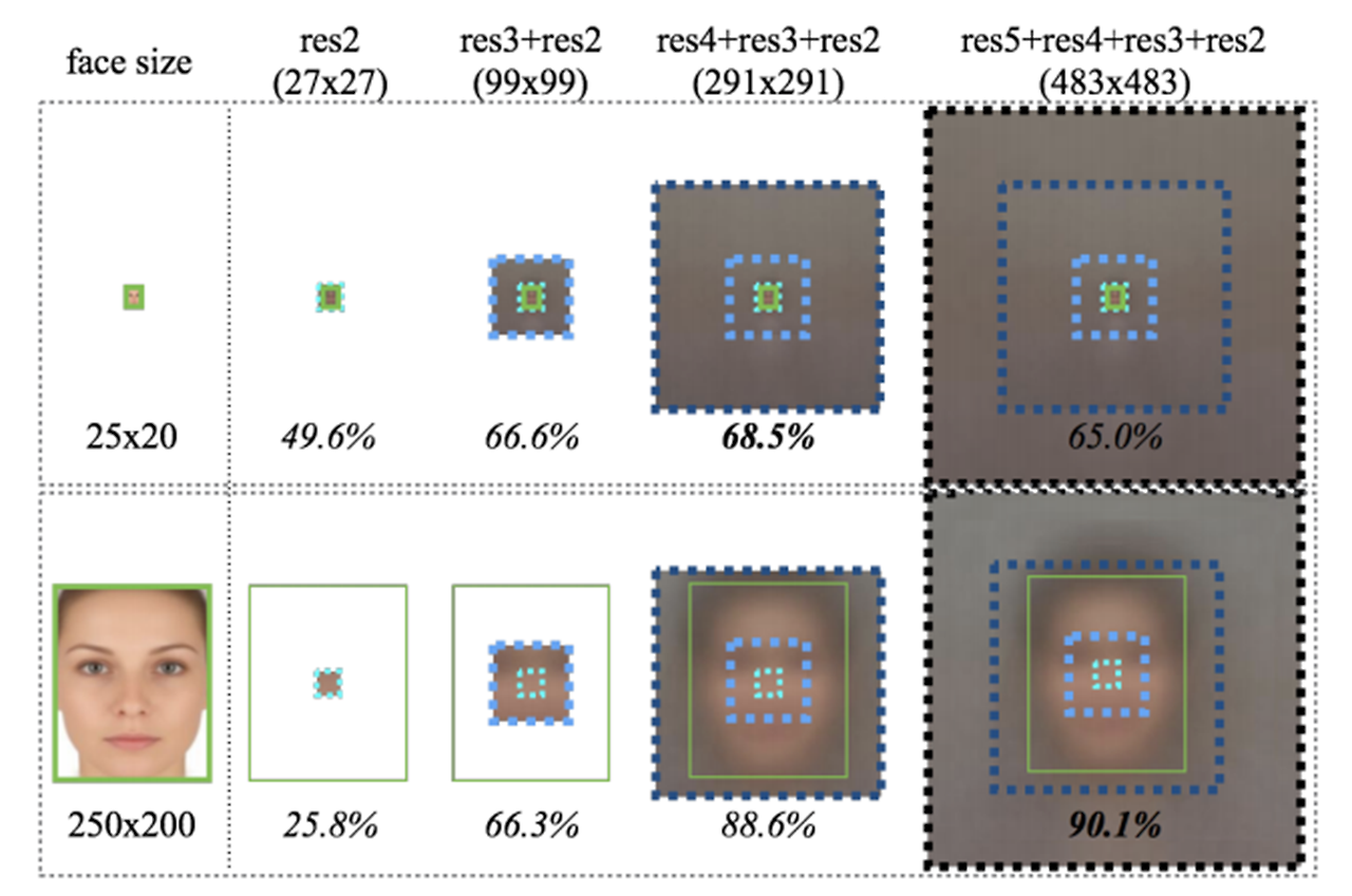 아래 그림에서, face size를 두고 receptive field가 커질수록 정확도가 높아지는 경향이 있음을 알 수 있다.