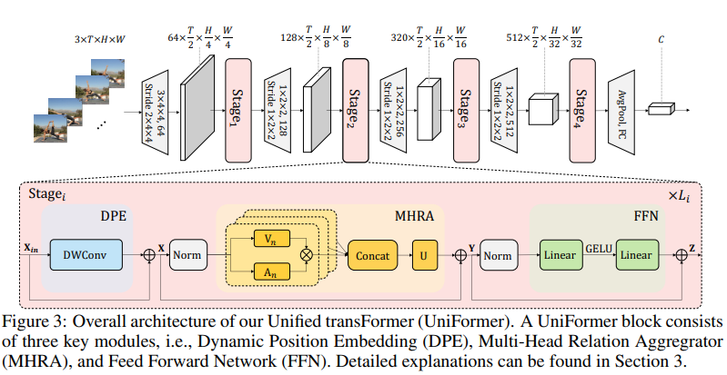 UNIFORMER 모델은 Dynamic Position Embedding (DPE), Multi-Head Relation Aggregator (MHRA), Feed-Forward Network (FFN)의 세 가지 모듈로 구성되어 있다. 그리고 이 모델의 가장 주요한 특이점은 relation aggregator인데 이는 아래와 같은 특징을 가진다.