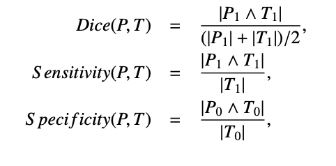 평가: 다이스(Dice), 민감도(Sensitivity) 및 특이도(Specificity)