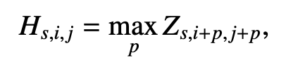 공간 위치에 대해 특징 맵 O에서 최대값을 취함