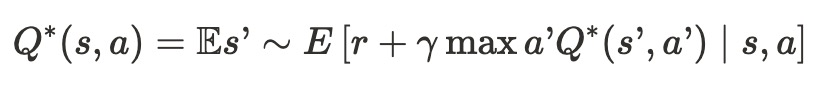 - 여기서 r은 현재 시점의 보상이고, max 항은 다음 상태에서의 최대 기대 보상을 의미한다.