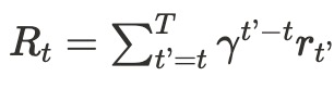 - 에이전트는 강화학습 환경에서 행동을 선택하여 미래 누적 보상 R_t를 최대화 하는것을 목표로 한다.