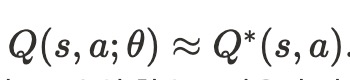 - ⇒ 따라서 이를 신경망을 통해 근사한다. 이를 근사하는 모델을 Q-Network라고 부른다(가중치 업데이트). 손실 함수는 다음과 같다.