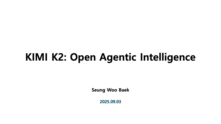 NLP [2025-2] 백승우 - Kimi K2: Open Agentic Intelligence by BaekDaBang 2025. 9. 10. 공유하기 게시글 관리 OUTTA AI Tech Blog 'NLP' 카테고리의 다른 글 [2025-2] 김경훈 - Simulating Training Data Leakage in Multiple-Choice Benchmarks for LLM Evaluation (Arxiv 2025) (0) 2025.09.13 [2025-2] 백승우 - Intent of Data Contamination (0) 2025.09.13 [2025-2] 김민정 - Are Large Language Models Memorizing Bug Benchmarks? (0) 2025.09.06 [2025-2] 정인아 - PaCoST: Paired Confidence Significance Testing for BenchmarkContamination Detection in Large Language Models (0) 2025.09.06 [2025-2] 박지원 - Benchmark Inflation: Revealing LLM PerformanceGaps Using Retro-Holdouts (0) 2025.09.04 관련글 [2025-2] 김경훈 - Simulating Training Data Leakage in Multiple-Choice Benchmarks for LLM Evaluation (Arxiv 2025) [2025-2] 백승우 - Intent of Data Contamination [2025-2] 김민정 - Are Large Language Models Memorizing Bug Benchmarks? [2025-2] 정인아 - PaCoST: Paired Confidence Significance Testing for BenchmarkContamination Detection in Large Language Models