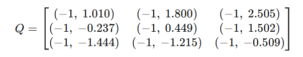 각 항목은 (Q(stay),Q(move))를 의미한다.