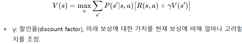 핵심은 벨만 방정식(Bellman Equation)이다: