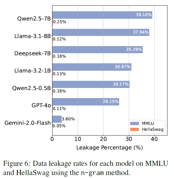 이는 일부 모델들이 평가 문제의 1/3 이상을 이미 학습 중에 봤을 가능성을 시사합니다
