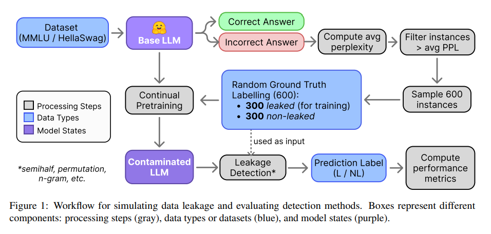 이 연구는 훈련 데이터 누출 시뮬레이션을 통해 세 가지 누출 감지 방법을 평가합니다.