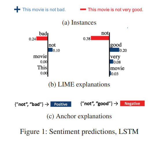 위 이미지의 LIME의 감정 분석 케이스를 예시로 들면, 두 explanations이 locally accurate하게 계산되었음에도 왼쪽에서의 설명(The movie is not bad)을 오른쪽(This movie is not very good)에 적용한다면 “not”이 긍정적인 영향을 미친다고 생각할 수 있음(사실은 그렇지 않음)