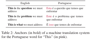 Table 2에서는 multi-layer RNN encoder / attention-based decoder 번역 시스템에 대한 anchor를 계산(English-Portuguese 병렬 corpora에서 훈련됨)