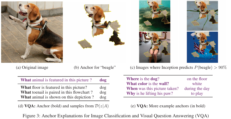 $\mathcal{D}$가 여기서 꽤 비현실적이지만 anchor는 모델이 그 품종을 결정하기 위해 다양한 강아지의 부분에 집중함을 설명